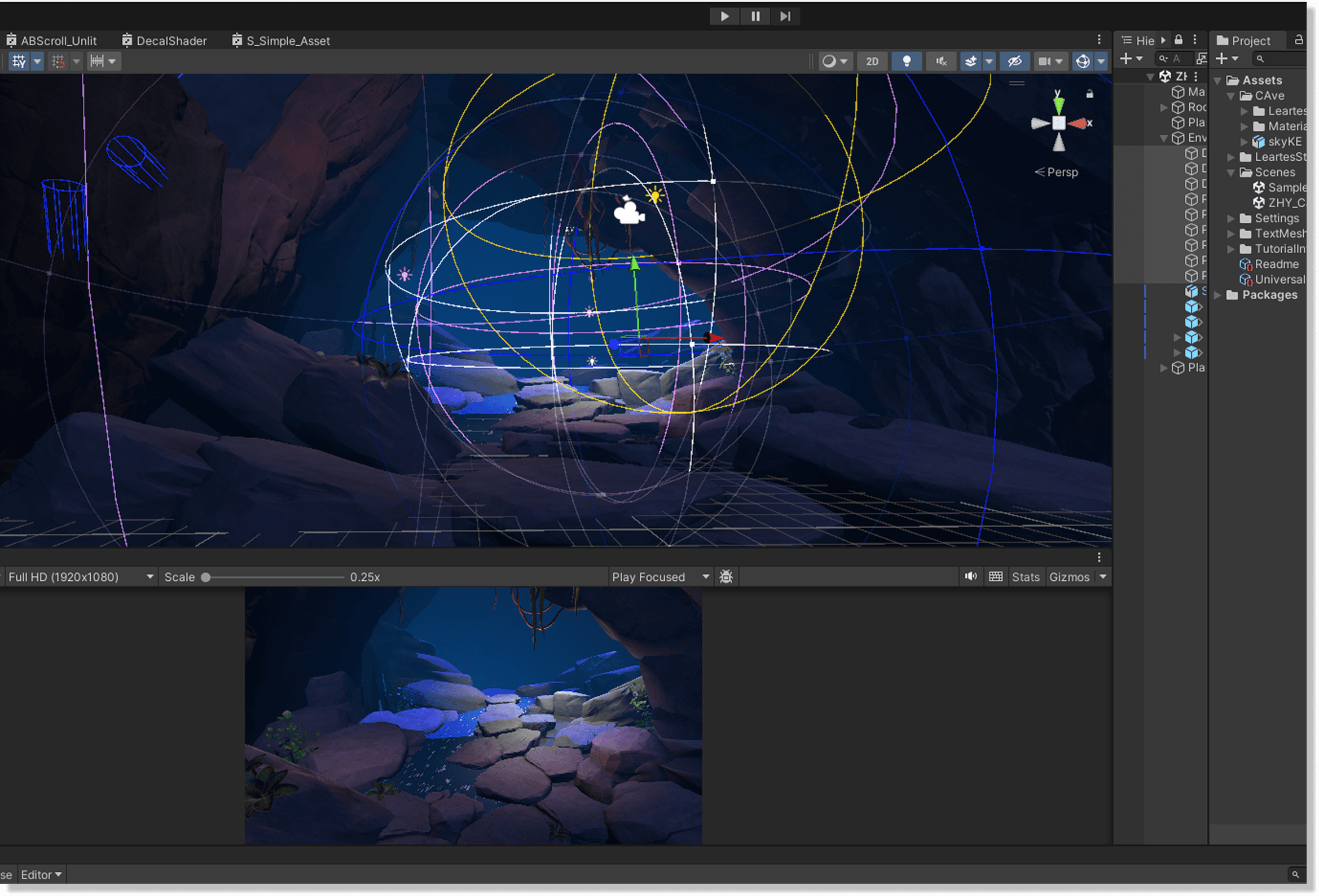 Prototyping scenes and applying stylized Unity shaders to finalize and optimize the game's visual identity.