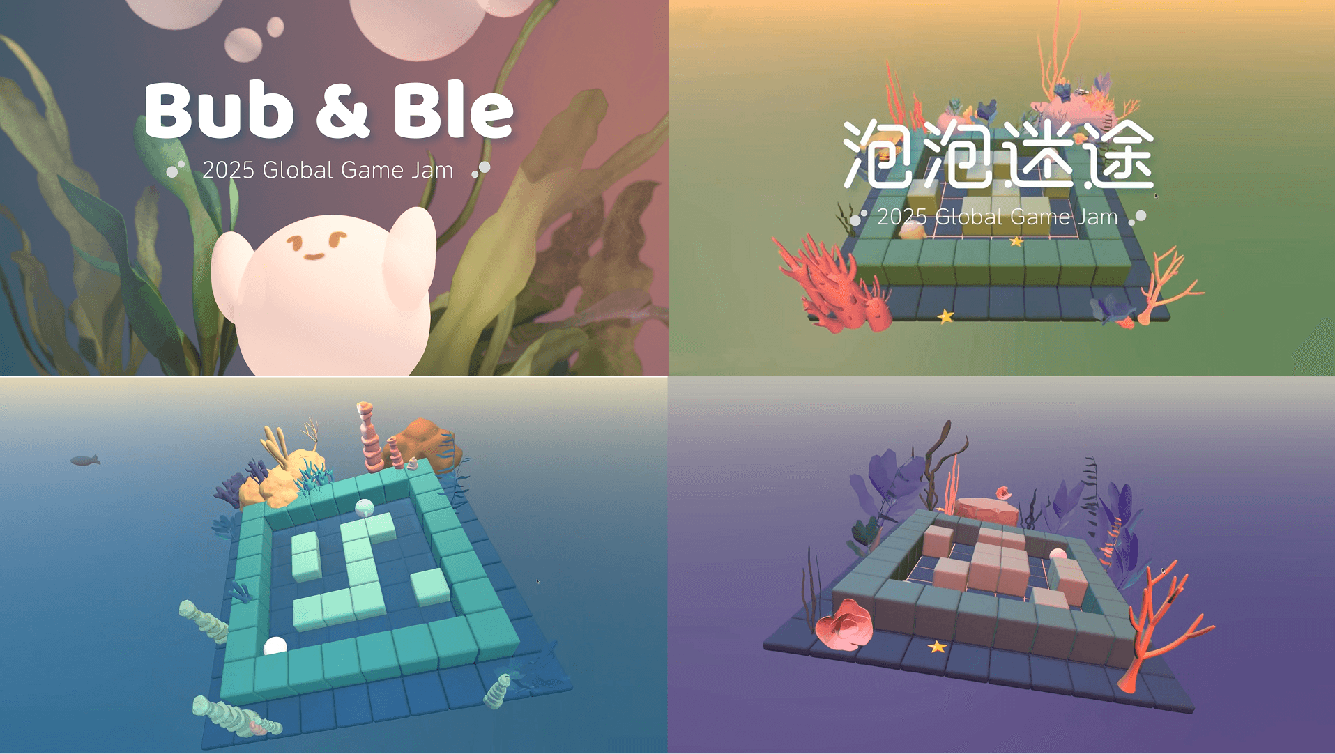 Centered on the Game Jam theme "Bubble," we utilized the natural buoyancy of bubbles as a core mechanic to tilt the terrain of an underwater maze. The player's objective is to reach a pink target bubble at the end of the level.